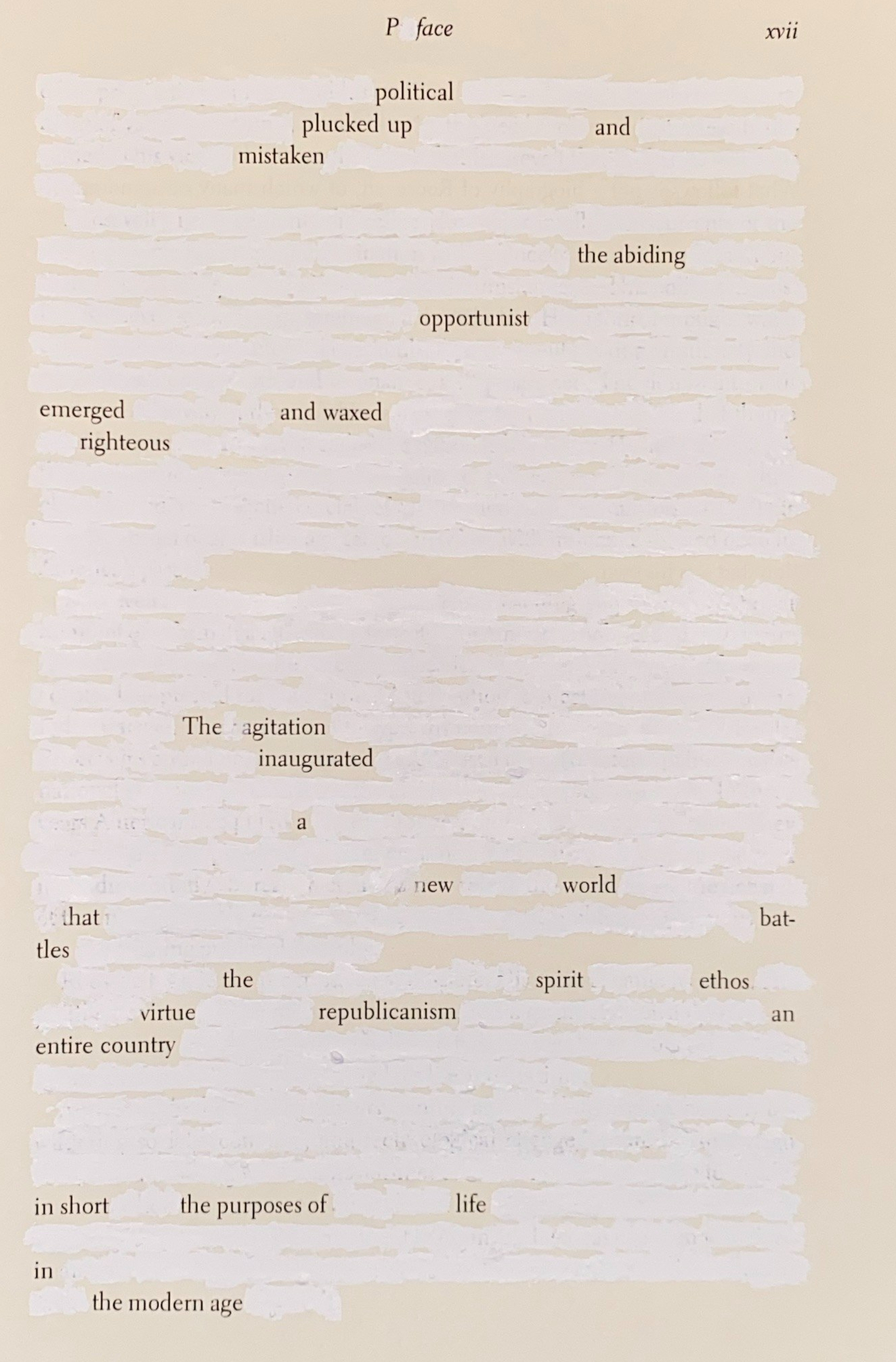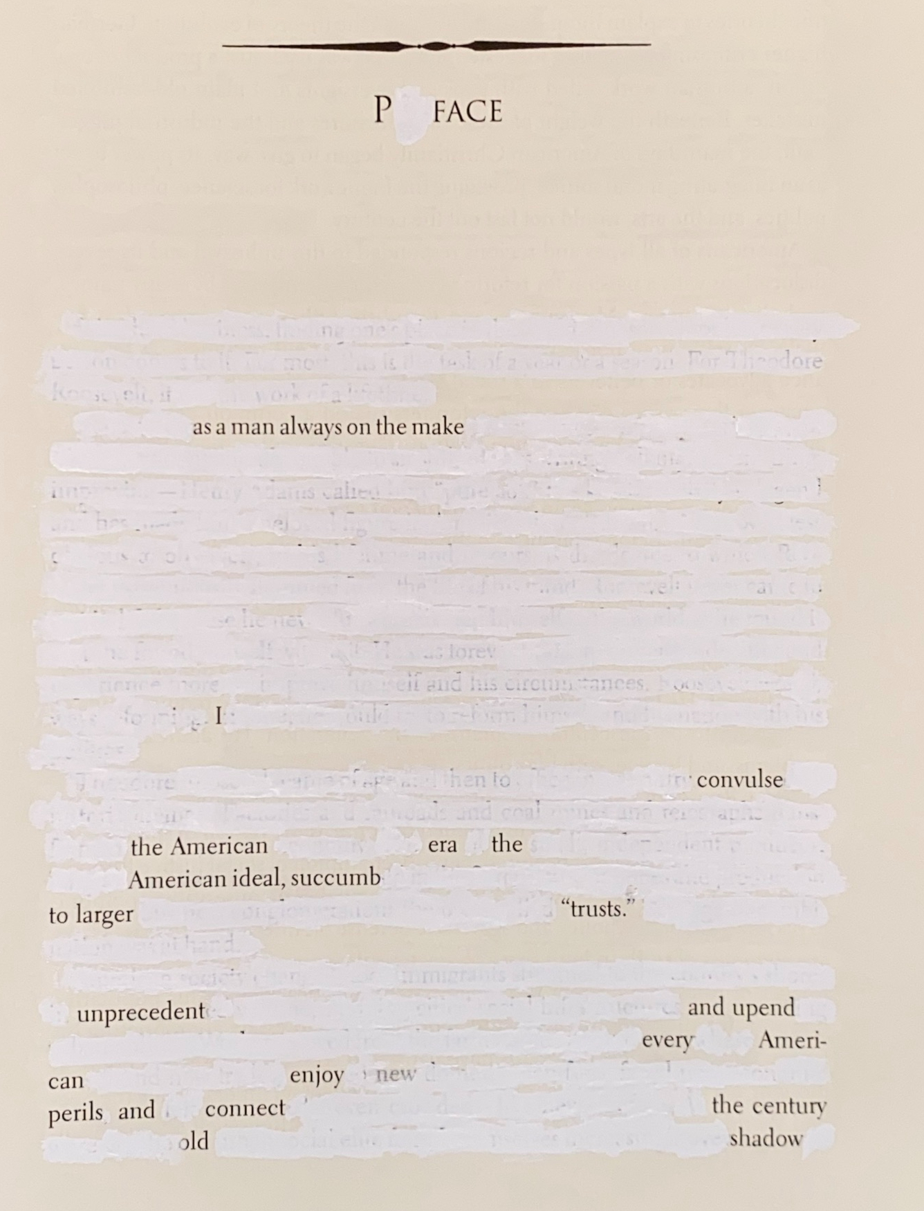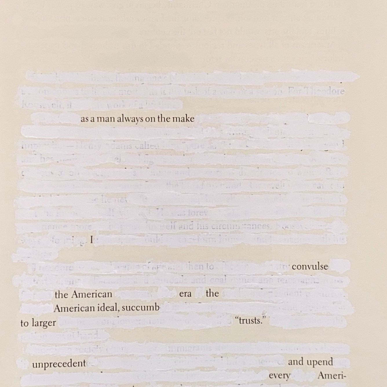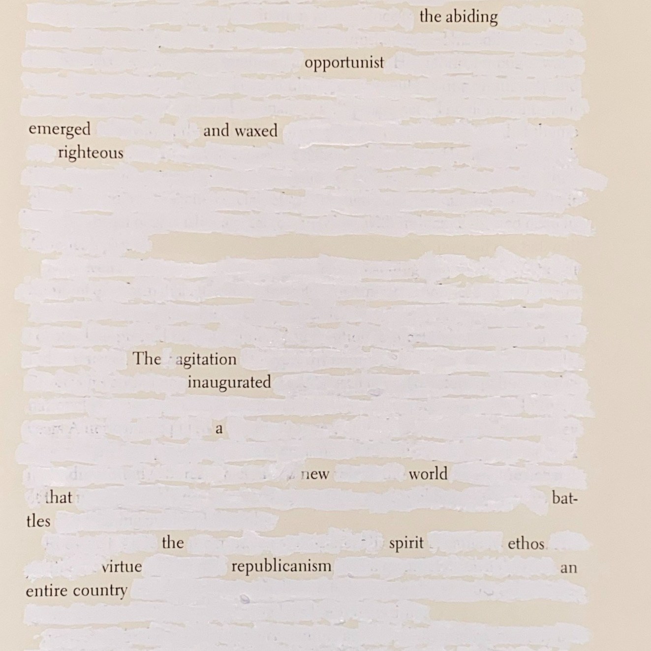 I am using erasure to edit, interpret, and sometimes have a little fun with the text in a way that keeps Hawley’s miscarriage of leadership in our minds.
